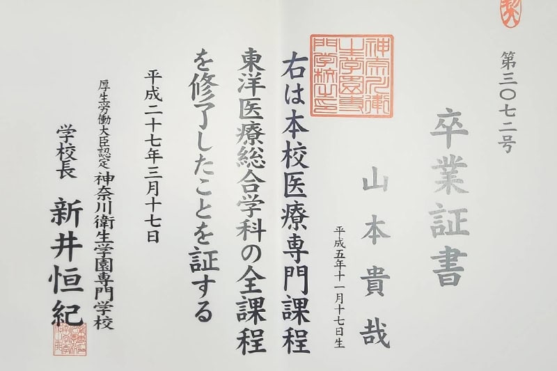 Takaya Yamamoto jest absolwentem Szkoły kształcenia zawodowego Eisei Gakuen Kanagawa (Tokio, Japonia) oraz KOBIDO Japan official Dr. Mochizuki Poziom 4